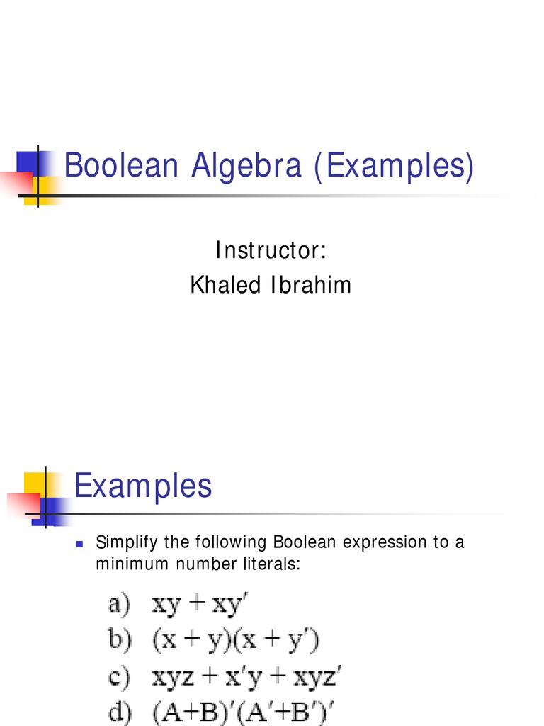 Boolean Algebra Simplification Examples And Solutions Pdf