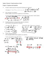 Algebra 2 Semester 1 Final Exam Review Packet Chapter 1